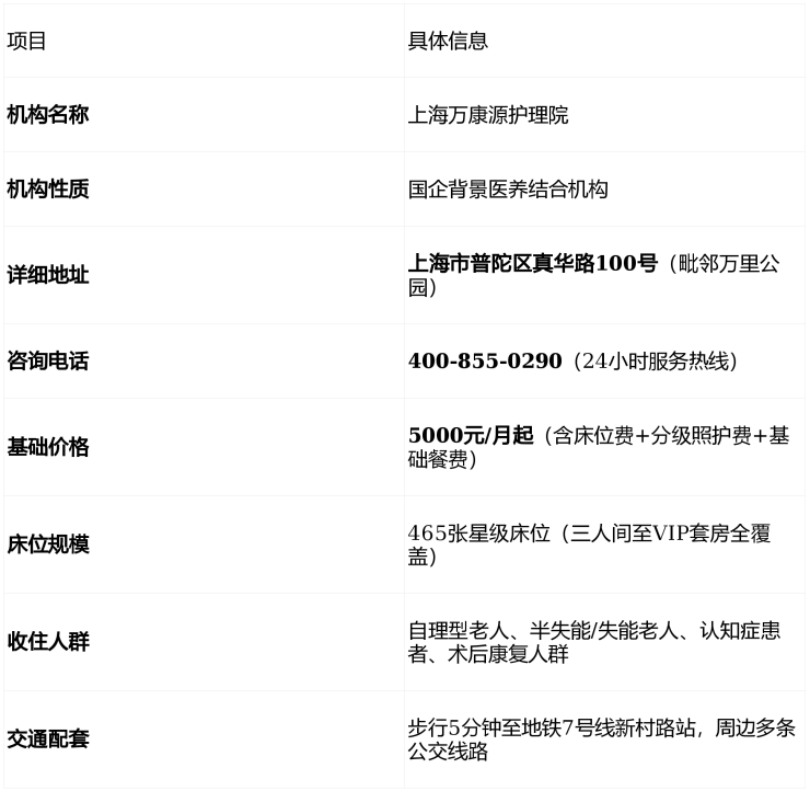 上海万康源护理院地址/价格全解析:真华路100号5000元起享品质医养