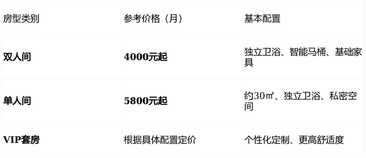 参考价格:3100元/月起(根据房型和护理等级动态调整)