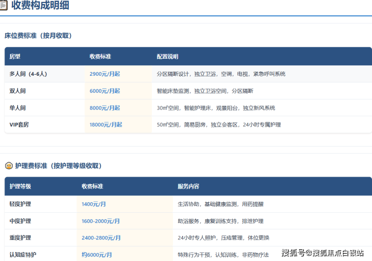 整体收费区间:2900-18000元/月,具体费用需根据老人的实际身体状况、护理需求和选择的房型综合评估确定。