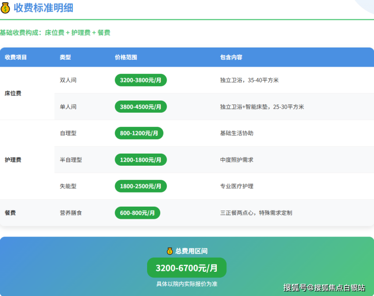 收费区间:3200-6700元/月(根据房型与护理等级分级定价)
