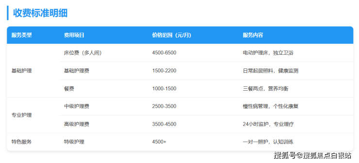 专业护理(7000-9000元/月):针对术后康复、慢性病管理,提供个性化康复训练。