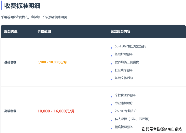 上海怡福荟康养小镇采用透明化收费模式,让每一分花费都清晰可见: