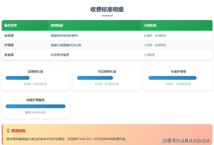 国投宝原健康养老综合体中心采用分层定价模式,费用透明清晰,具体收费标准如下: