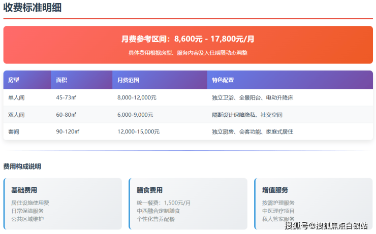 **住宿费:**包含房屋使用、物业管理等基础费用