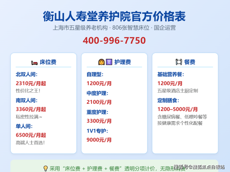 衡山人寿堂养护院采用“床位费+护理费+餐费+增值服务费”模块化计费模式,所有项目入住前一次性书面确认,无捆绑消费。具体收费如下: