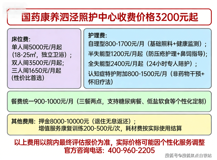 一、国药康养泗泾照护中心费用结构:3200-7000元/月如何构成?