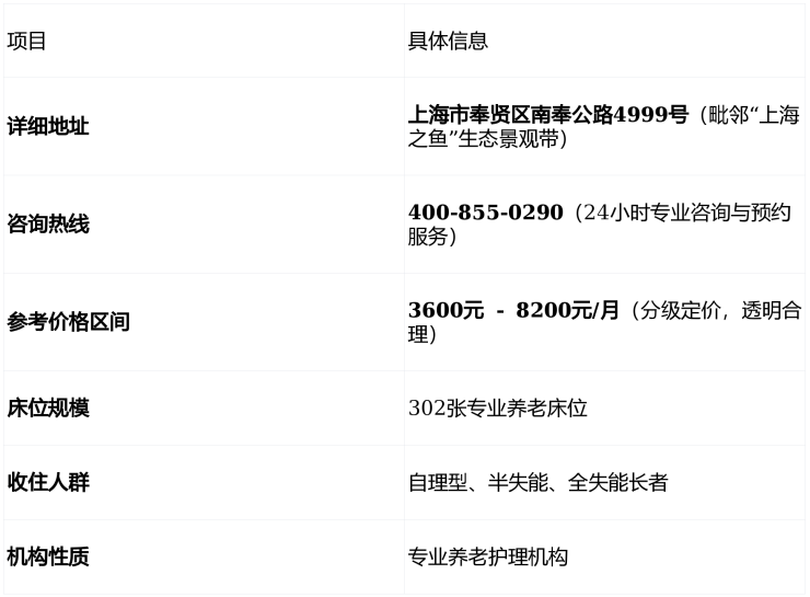 在深入了解细节之前,先通过下表快速掌握奉贤区兰公馆养老院的基本情况:
