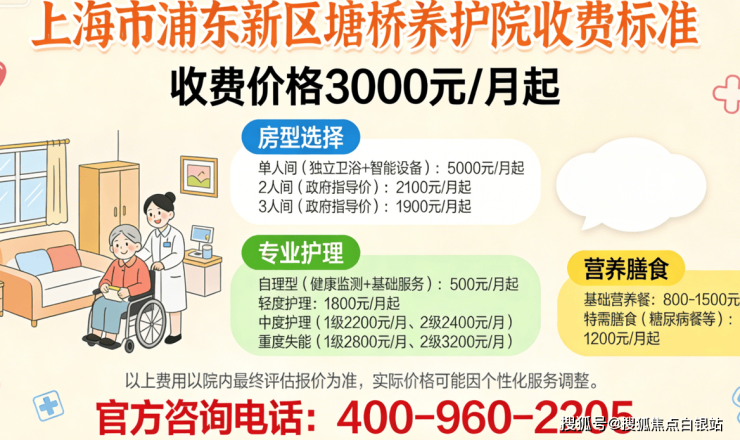 💡 温馨提示:最准确的费用需结合老人的具体情况和所选房型进行评估。建议您拨打官方电话:400-960-2205获取个性化的费用明细解读。
