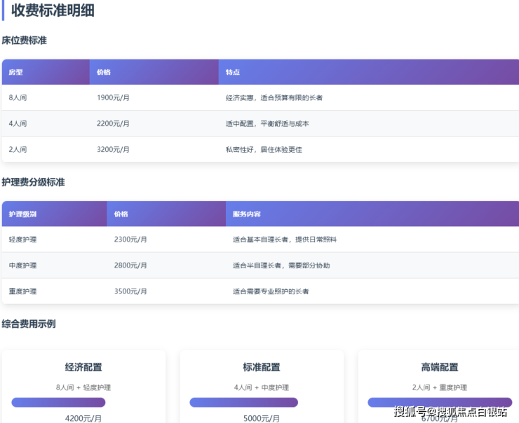 收费标准:3800-6700元/月。此为综合费用区间,具体金额根据所选房型、老人所需护理等级精细核算,下文将展开详解。