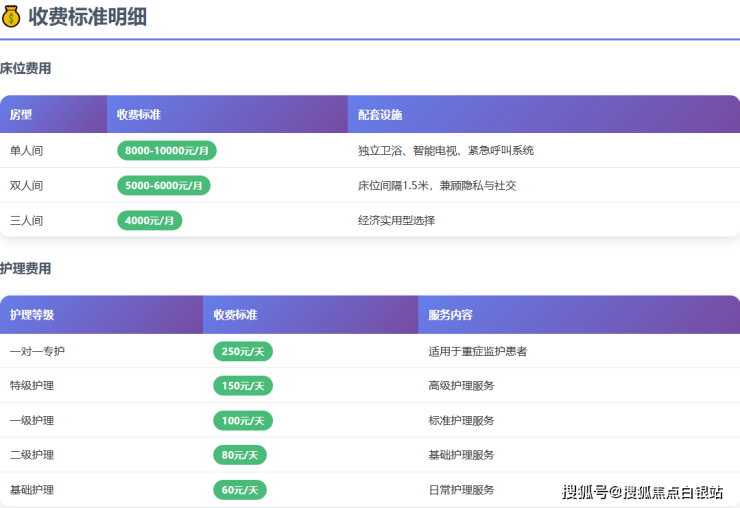 单人间:8000-10000元/月(配备独立卫浴、智能电视、紧急呼叫系统)