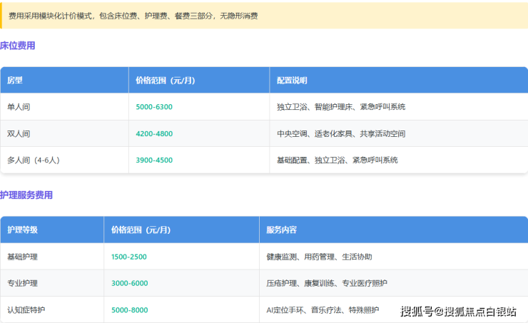 单人间:5000-15000元/月(含独立卫浴、智能护理床)