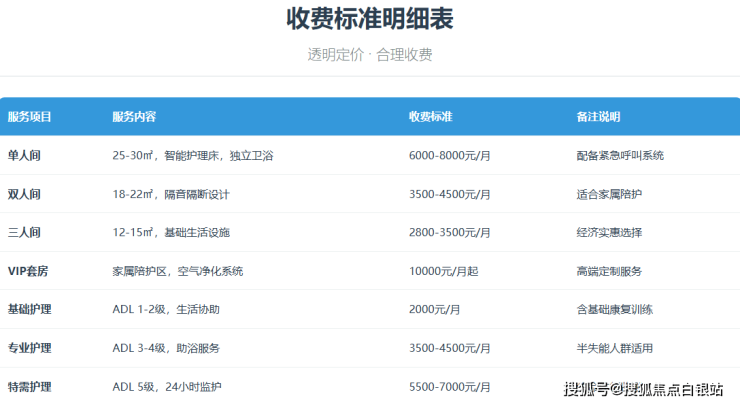 收费标准:7000-25000元/月(根据护理等级和房型不同)