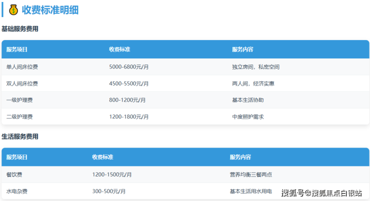 综合月费估算:将上述床位费、护理费、餐饮费相加,即可得到大致的月度总花费。例如,一位选择双人间、需要二级护理的长者,月度费用大致在4000(床位)+3000(护理)+1800(餐费) = 8800元/月左右浮动。这正是总体价格区间5000-9800元/月的来源。