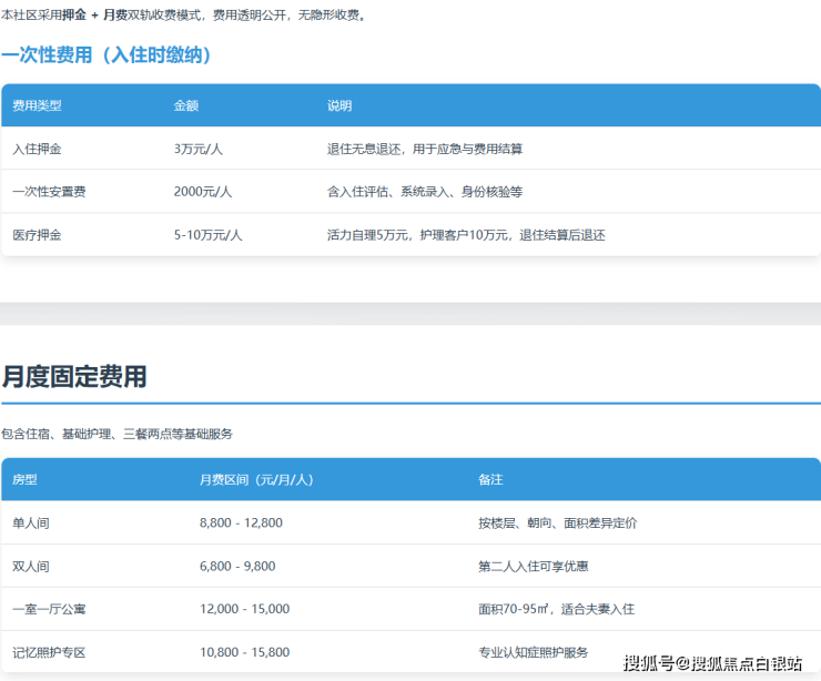1. 基础居住与照护费用