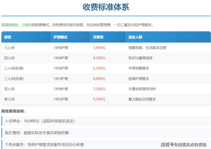 重要提示:以上为基本照护包价,个性化的医疗、康复理疗等项目可能根据实际发生情况另行计算。建议在咨询时明确需求。