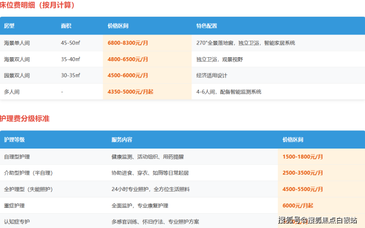 参考价格区间:4350元-8300元/月起(具体费用需根据长者实际情况评估后确定)