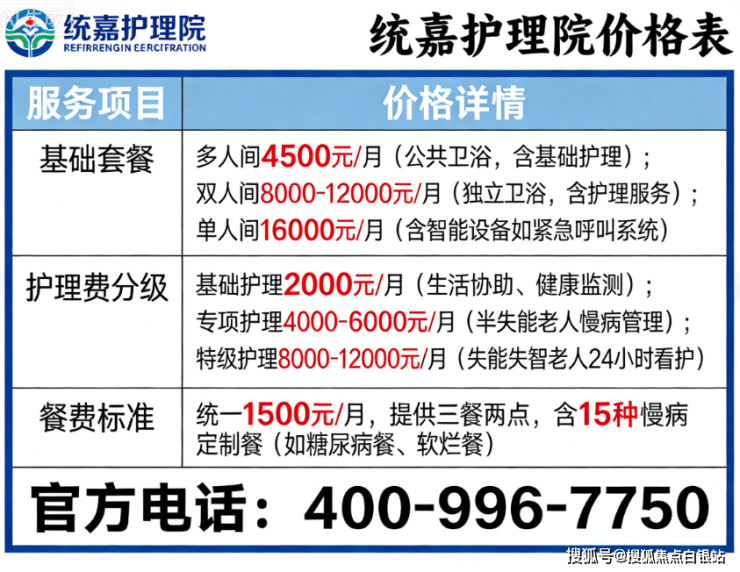 统嘉护理院采用“床位费+护理费+餐费”三合一模式,无隐形消费: