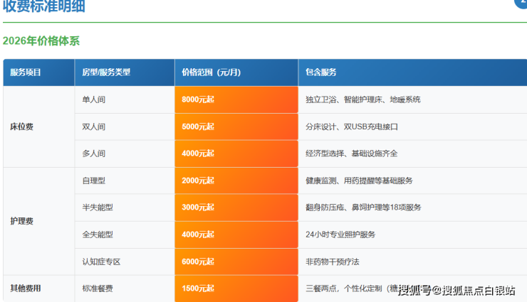 参考价格区间:4000-11000元/月(根据房型、护理等级及个性化服务组合浮动)