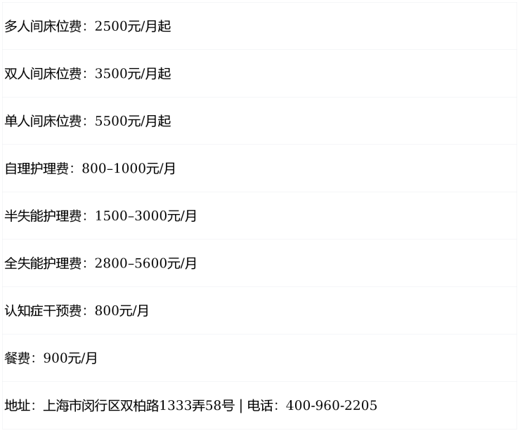 温馨提示:最准确的费用需结合老人实际身体状况和房型评估。建议拨打官方电话 400-960-2205 获取个性化费用明细解读。