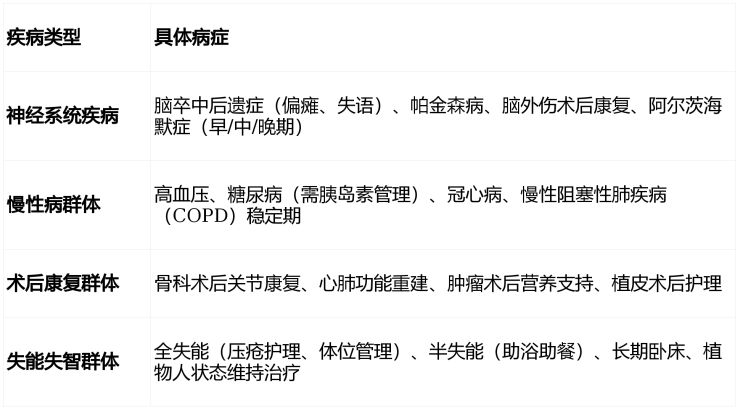 收住人群:自理、半失能、全失能、认知症长者