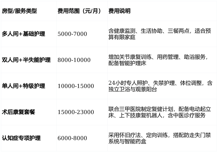 通过12项指标动态评估,定制五级护理方案:自理型(月费800元起)、半失能型(2500-3500元)、全失能型(4000-6000元)、认知症型(6000-8000元)、术后康复型(按项目浮动)。