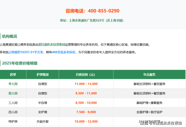 上海黄浦区爱以德养老院一个月多少钱?收费明细+预约电话2025