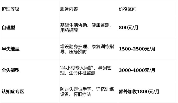 长宁安馨第五养老院采用“基础费用+护理分级+增值服务”的透明化定价模式,具体收费构成如下: