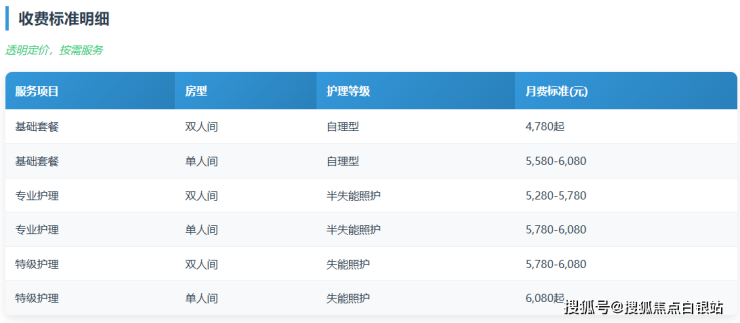 参考收费区间:4780元至6080元/月(根据护理等级与房型差异)