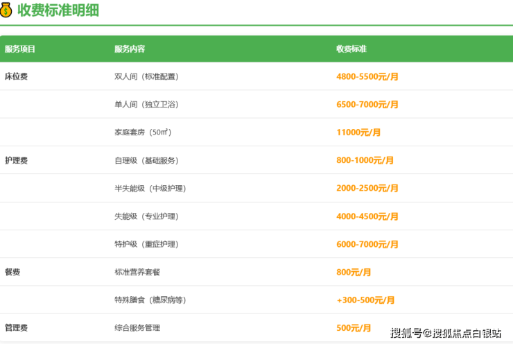 特护级:7000元/月及以上(针对有复杂医疗护理需求的长者)