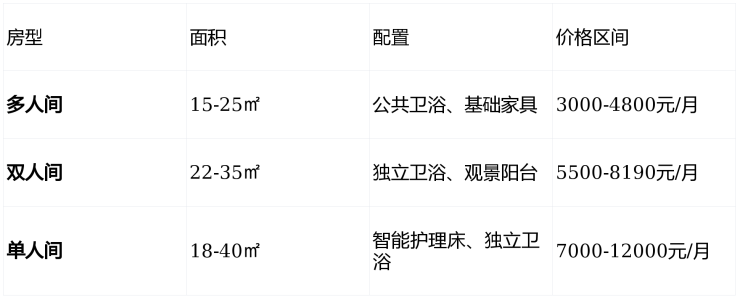 华汇老年福利院采用"床位费+护理费+餐费"模块化计价模式,月费区间为4800-12000元,具体费用根据房型、护理等级和餐食需求浮动。