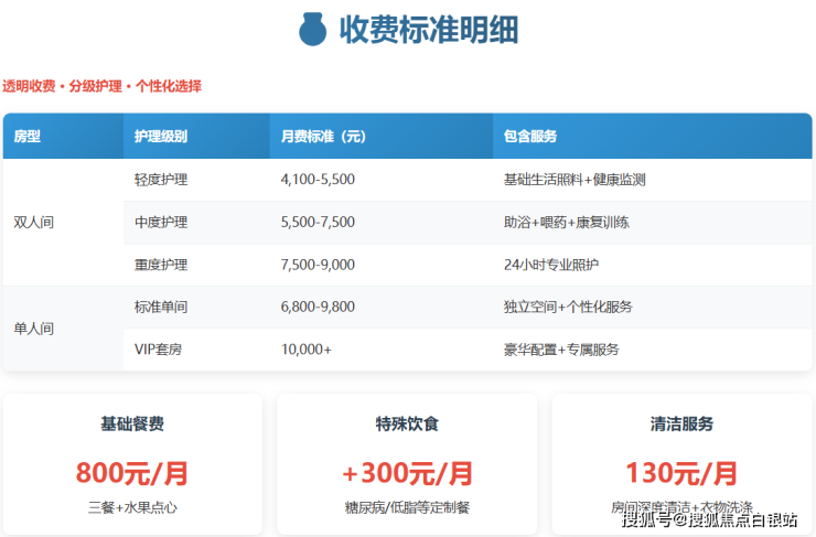 上海保龙养老院采用“床位费+护理费+餐费”的弹性定价模式,具体费用根据长者实际需求、房型及个性化服务调整: