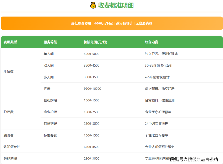 所有收费项目明码标价,无隐形消费,让家属安心。