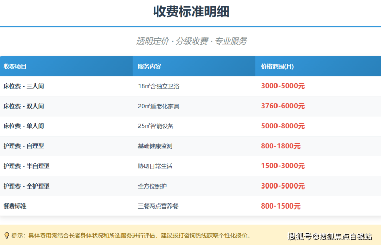温馨提示:具体费用需结合长者身体状况和所选服务进行评估,建议拨打400-855-0290获取个性化报价。