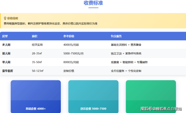 单人间:8000元/月起,配备独立卫浴、智能护理床、地暖系统