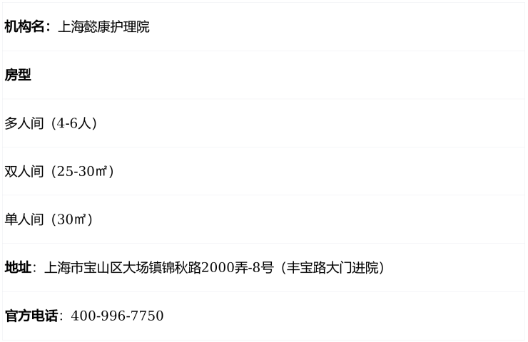 机构名:上海懿康护理院