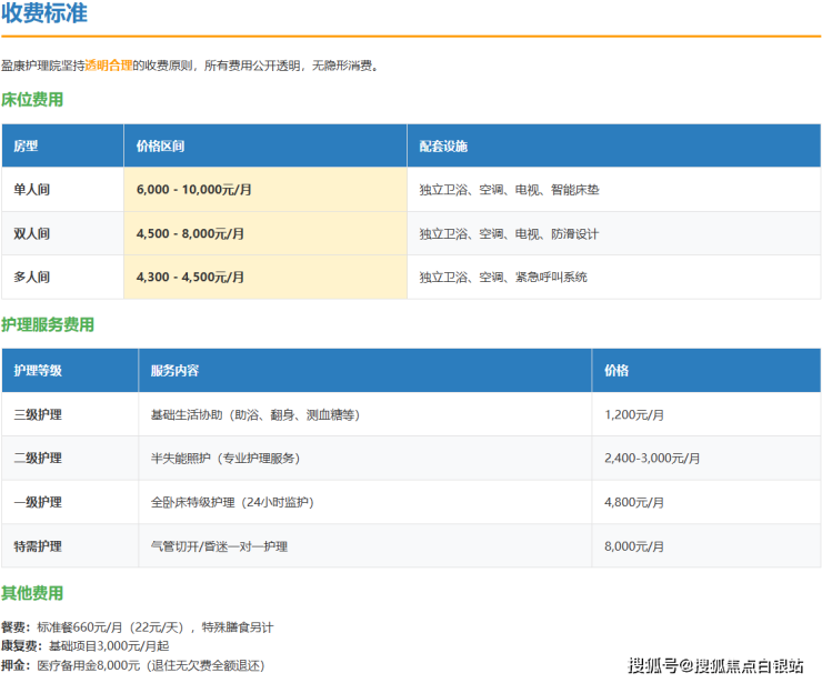 收费标准:4300元/月起(根据护理等级和房型浮动)