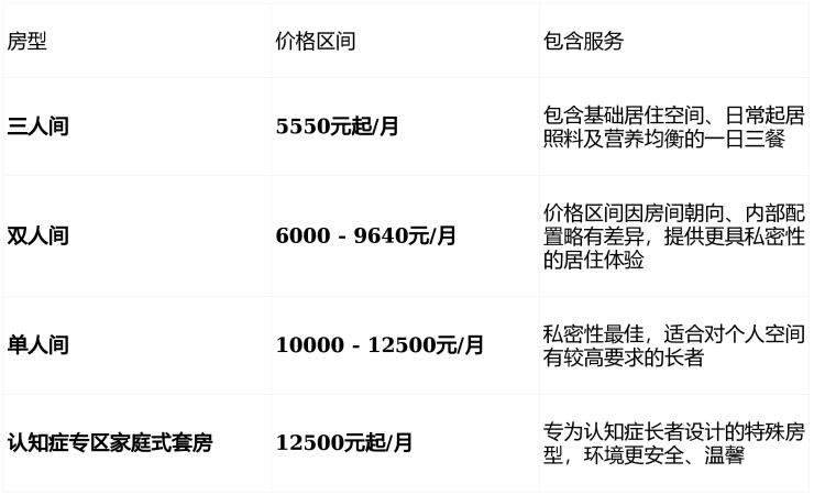 其价格从5550元/月起步,丰俭由人,能够满足不同经济条件和照护需求的家庭。