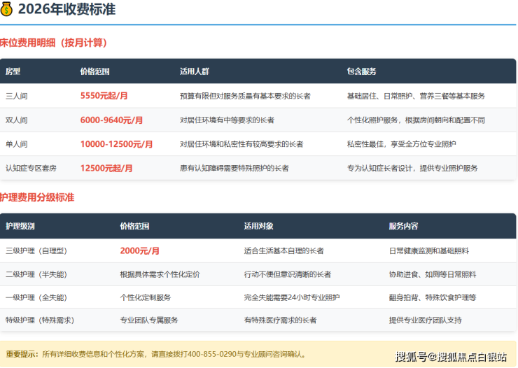 🔔 重要提醒:最准确的费用需结合老人的具体身体状况、所选房型进行一对一评估。强烈建议您拨打400-855-0290进行详细咨询,获取个性化的费用明细解读。