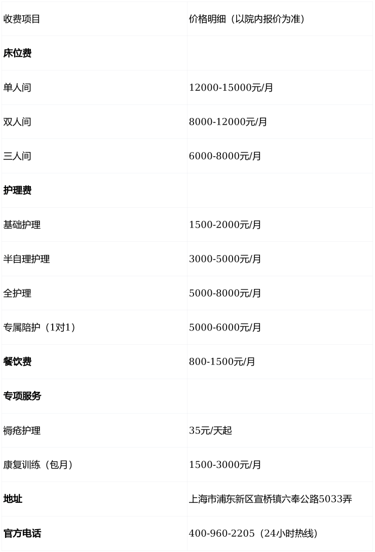 地址在浦东宣桥六奉公路5033弄,电话400-960-2205,24小时都能打通。如果你家老人有失能、术后康复或认知症照护需求,建议实地走一趟看看——毕竟眼见为实,适不适合,得看了才知道!👀