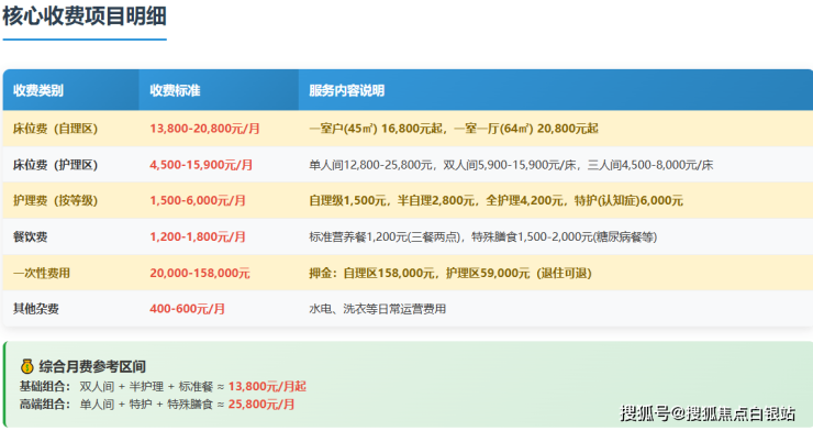**参考价格区间:**13800-26800元/月(根据护理等级和房型浮动)