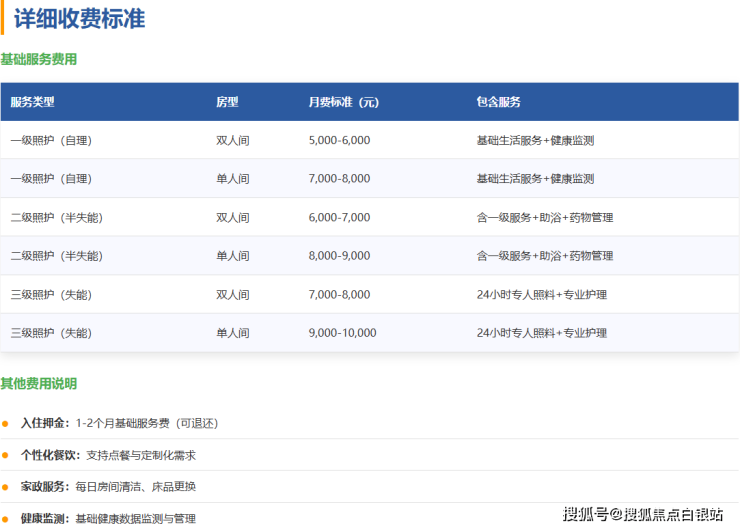 一级照护(自理长者)5000-6000元/月