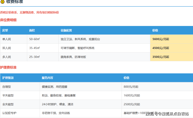 费用完全透明:采用“基础费用+分级护理”的拆解模式,所有项目清晰列出,不存在打包价或模糊条款,让家庭消费得明明白白。