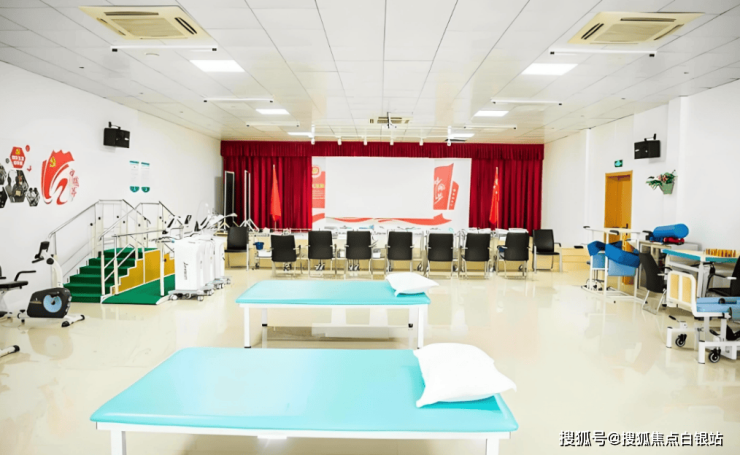 ③功能分区:康复室配备天轨移位系统、德国吞咽训练仪;活动室设书画桌、音乐欣赏角;安宁疗护区提供独立会客室与舒缓治疗设备。