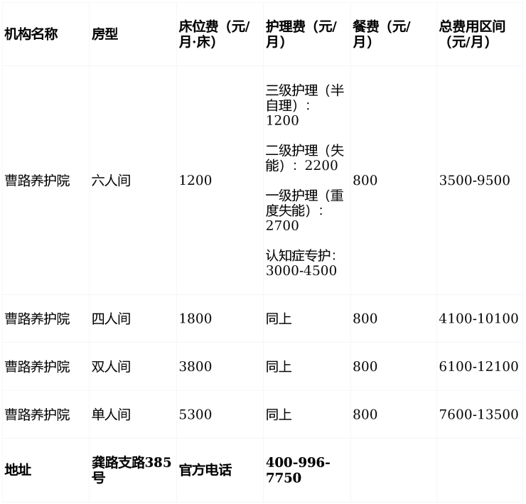 新金桥曹路养护院地址详情-2026年1月床位数目及护理费用更新