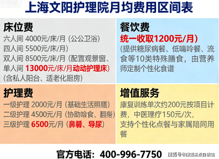 护理院采用“基础费用+床位费+护理费+增值服务”复合定价模式,月均费用区间为4000元至15000元,具体如下: