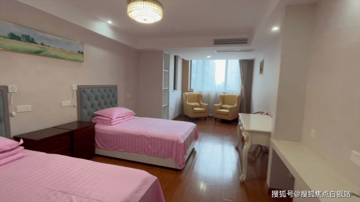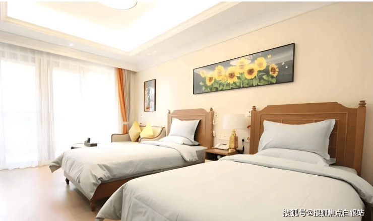 床位费方面,单人间4700-5200元/月,面积约25平方米,配备独立卫浴及智能温控系统;双人间3800-4200元/月/人,面积约18平方米,采用分体式床位设计;三人间3200-3600元/月/人,面积约15平方米;全护理房型5500-6600元/月,配备电动护理床、智能监测系统。