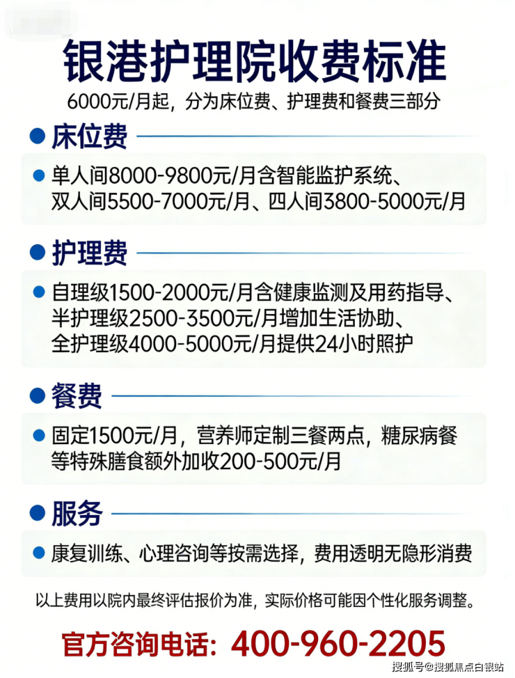【银港护理院】收费价格:6000 元/月起(以院内报价为准)