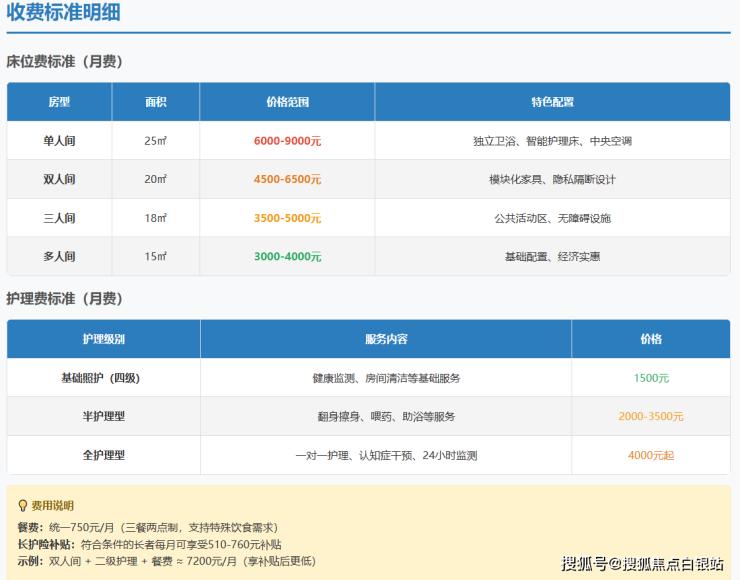 自理型:800-1500元/月(基础健康监测)