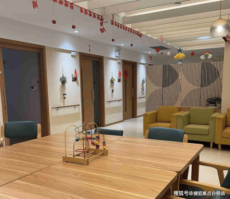 认知症照护专区:采用单元式布局,通过色彩分区、记忆线索设计(如老照片墙、怀旧物品)降低认知负荷,并配备防走失电子围栏。