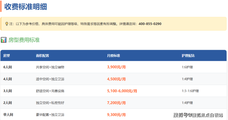 参考价格:3500元/月起,根据护理等级和房型灵活调整